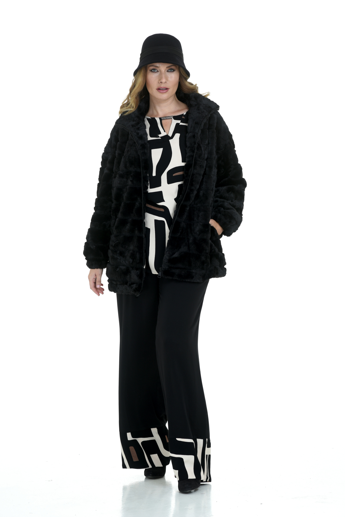 Γουνάκι μακρύ μαύρο με γιακά σε κανονικά και μεγάλα άνετα μεγάλα μεγέθη. Ένα υπέροχο γουνάκι που μπορείτε να φορέσετε και στις καθημερινές σας εμφανίσεις και για μια επίσημη έξοδο. Έχει φερμουάρ μακρύ μανίκι και είναι φιδραρισμένο εσωτερικά. Είναι από οικολογική γούνα.