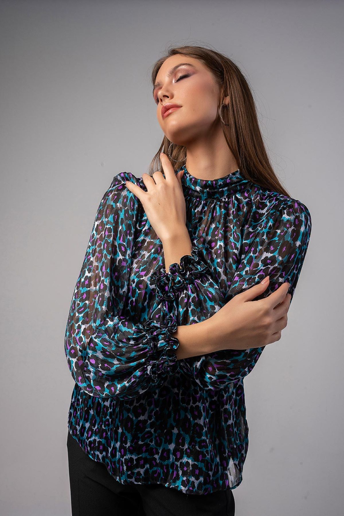 - Μπλούζα εμπριμέ σε ζορζέτα με γιακά