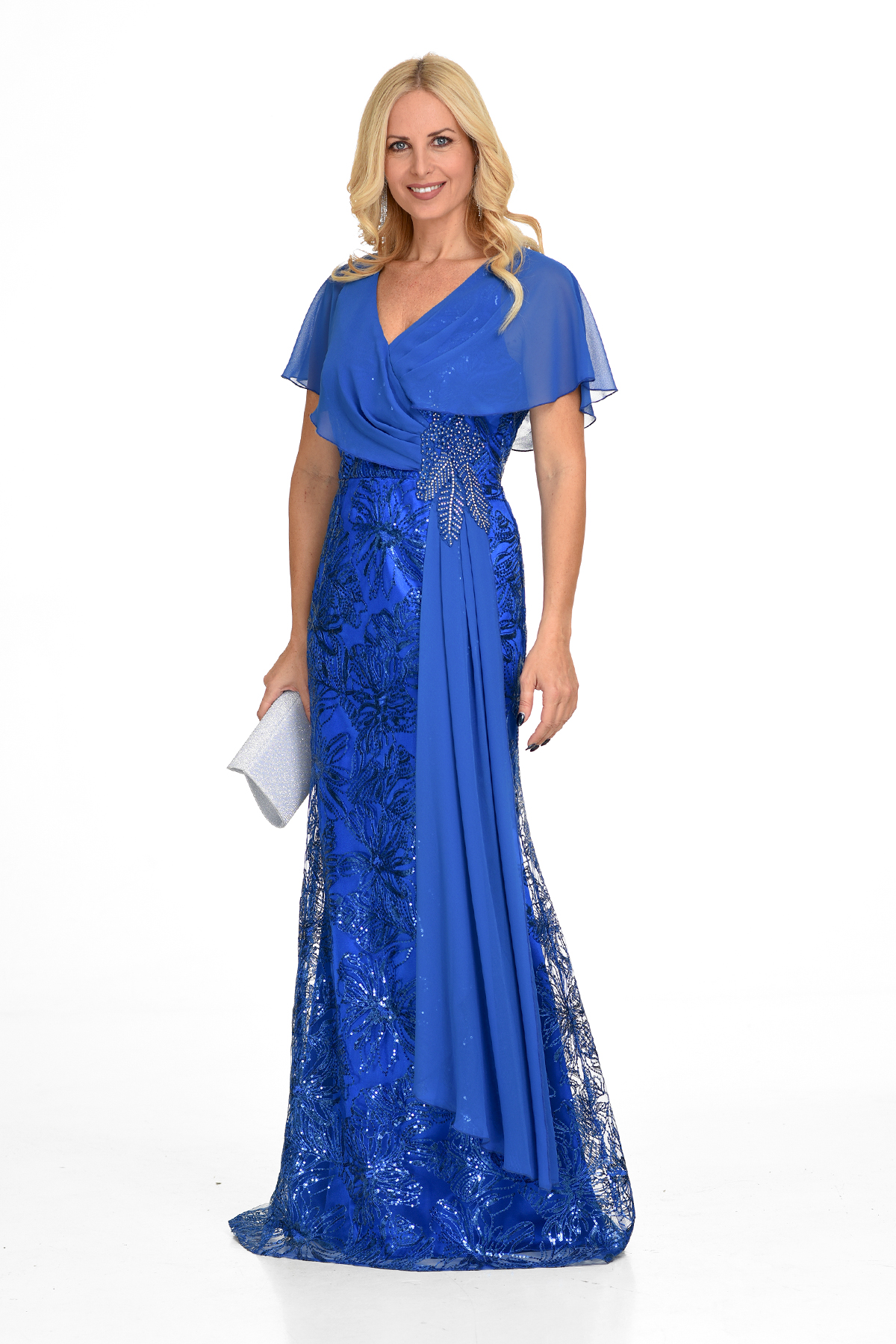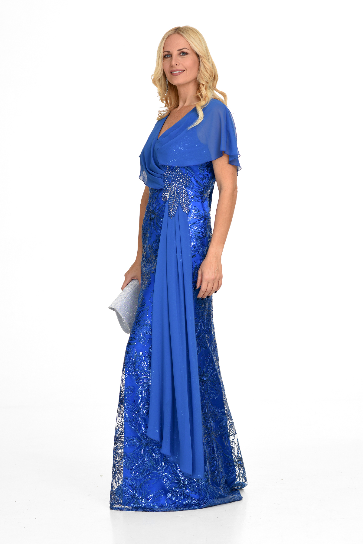 Βραδινό μάξι φόρεμα για γάμο γοργονέ μπλε ρουά σε παγιέτα γκλίτερ